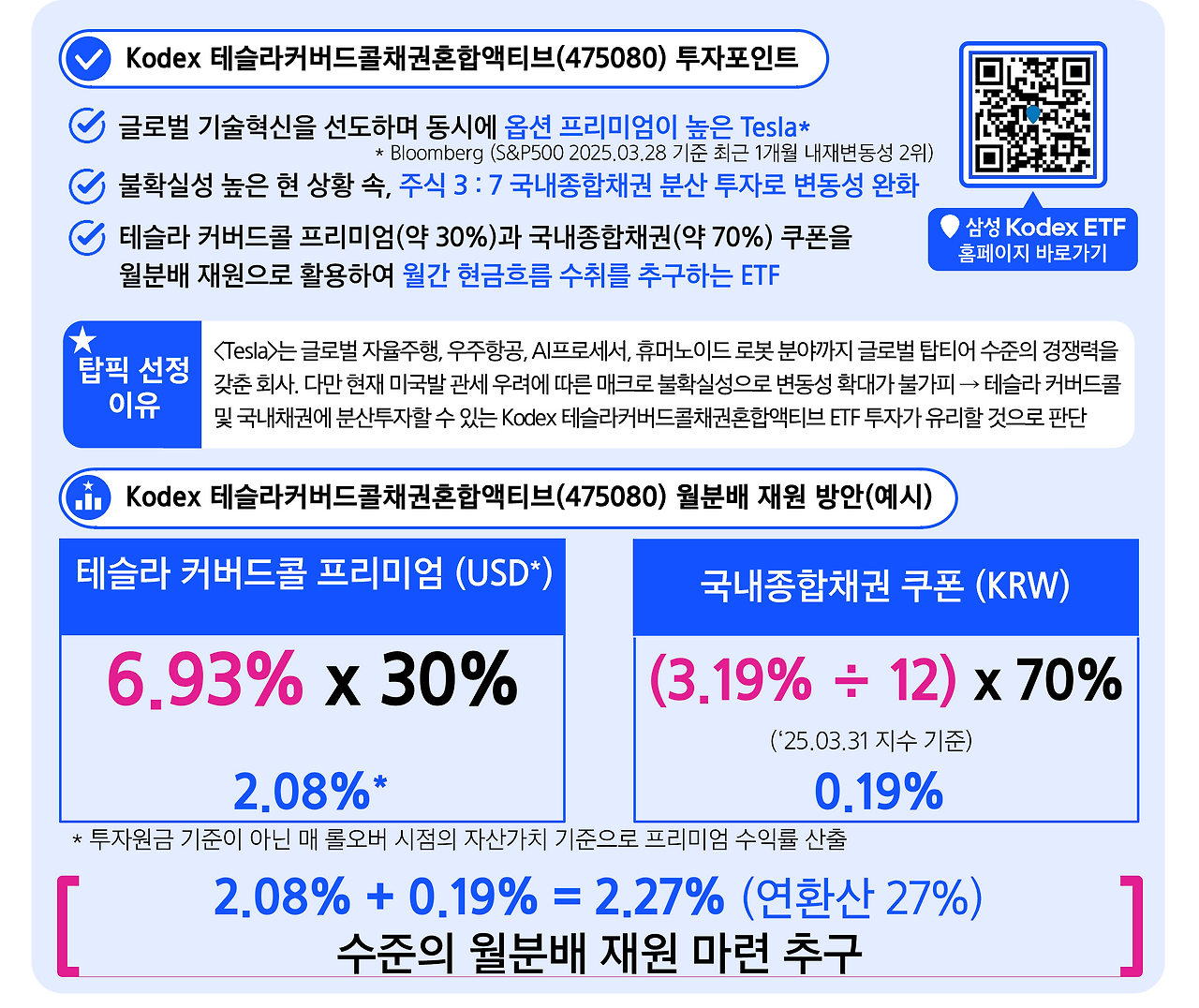 월배당 KODEX 테슬라커버드콜채권혼합액티브 소개